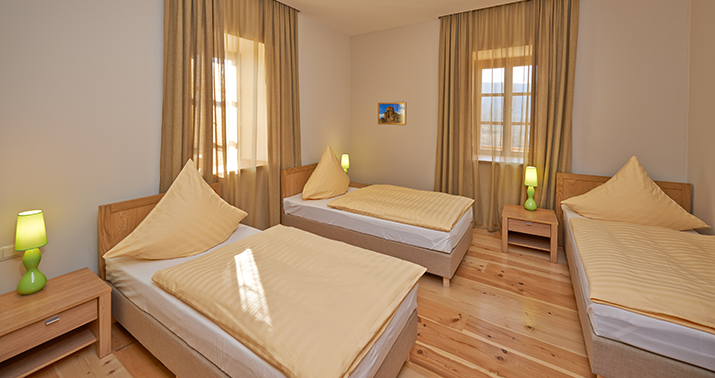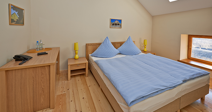 Sieben Räume - vier Doppelzimmer, eine Juniorsuite und zwei Seniorsuiten - stehen zur Verfügung. Alle Zimmer sind ausgestattet mit Dusche/WC, Flachbildschirm und Satelittenempfang, Telefon, Internetverbindung, Wlan, Minibar und Safe.